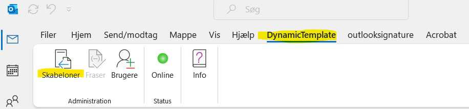 - 2. Gå til fanen Dynamic Template (det er lige meget hvilket MS-program du har åbent, de har alle samme fane og adgang til skabelonerne)