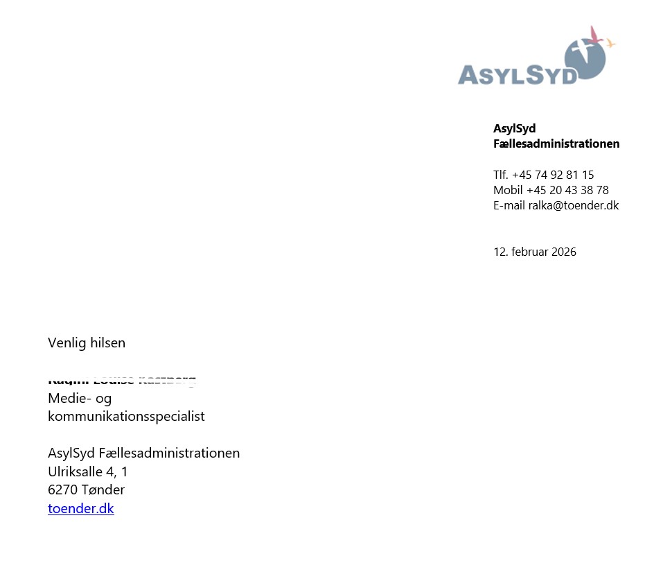 Ved alle former for internt såvel som ekstern kommunikation skal AsylSyds skabeloner anvendes. Disse findes i Microsoft Offices programmer. Se guiden til Dynamic Template, der viser hvordan du vælger og åbner en skabelon.